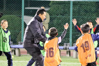 また、阿部翔平さんのシュート練習にスクール生のGKが入り、真剣勝負もしました。